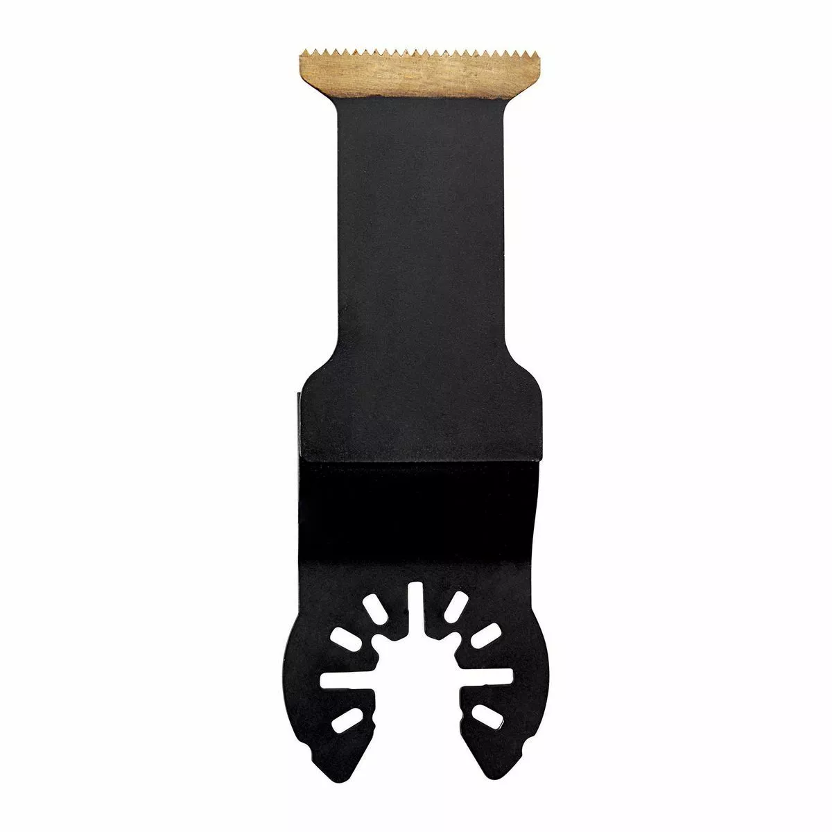 This BAUERâ„¢ bi-metal offset blade works with most brands of Multipurpose Oscillating Tools to make clean plunge and flush cuts in metal, plastic, drywall, wood and wood with nails. The blade is capable of plunge cuts to a depth of 1-5/8 in. and features extra sharp titanium coated teeth that cut fast and stay sharp. Ideal for demolition work.