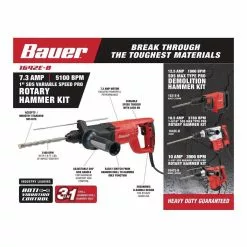 Built for heavy use, the BAUERâ„¢ 20V Cordless 5 in. Random Orbital Sander delivers 10,000 OPM with 3mm orbit action for smooth, swirl-free finishes. Designed with a comfort rubber palm grip and lock-on switch for extended use and less fatigue. Convenient hook and loop sandpaper attachment fits universal, 5-hole and 8-hole sandpaper discs. This sander includes an assortment of sandpaper of varying grits. Battery and charger sold separately. Buy with confidence with an included no-questions-asked risk-free trial, extendable for up to 2 years.