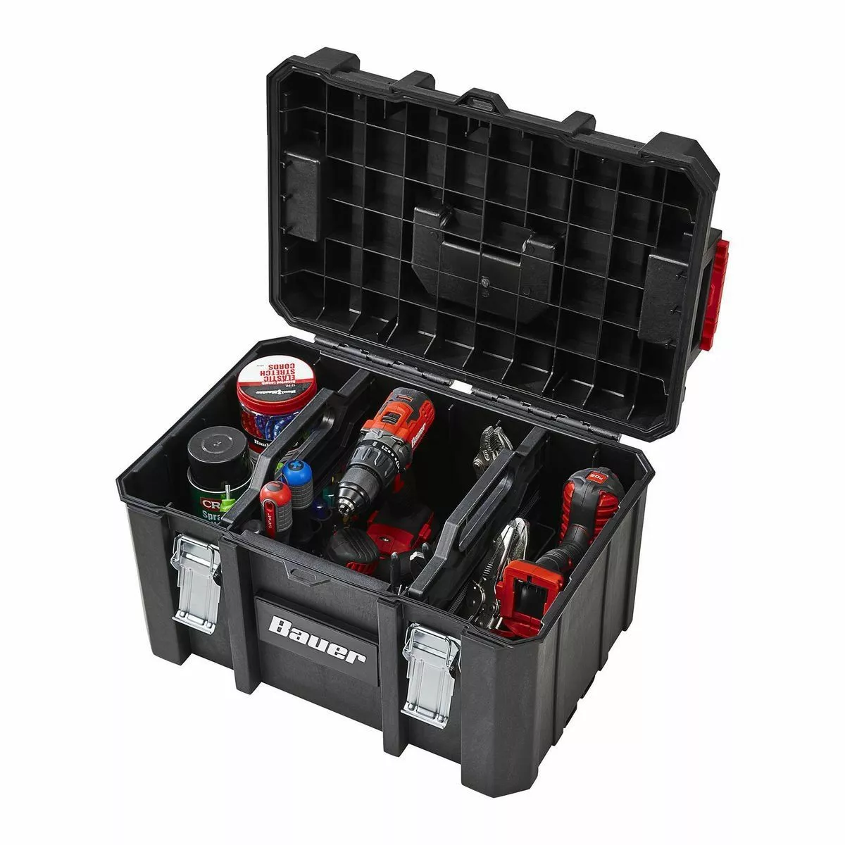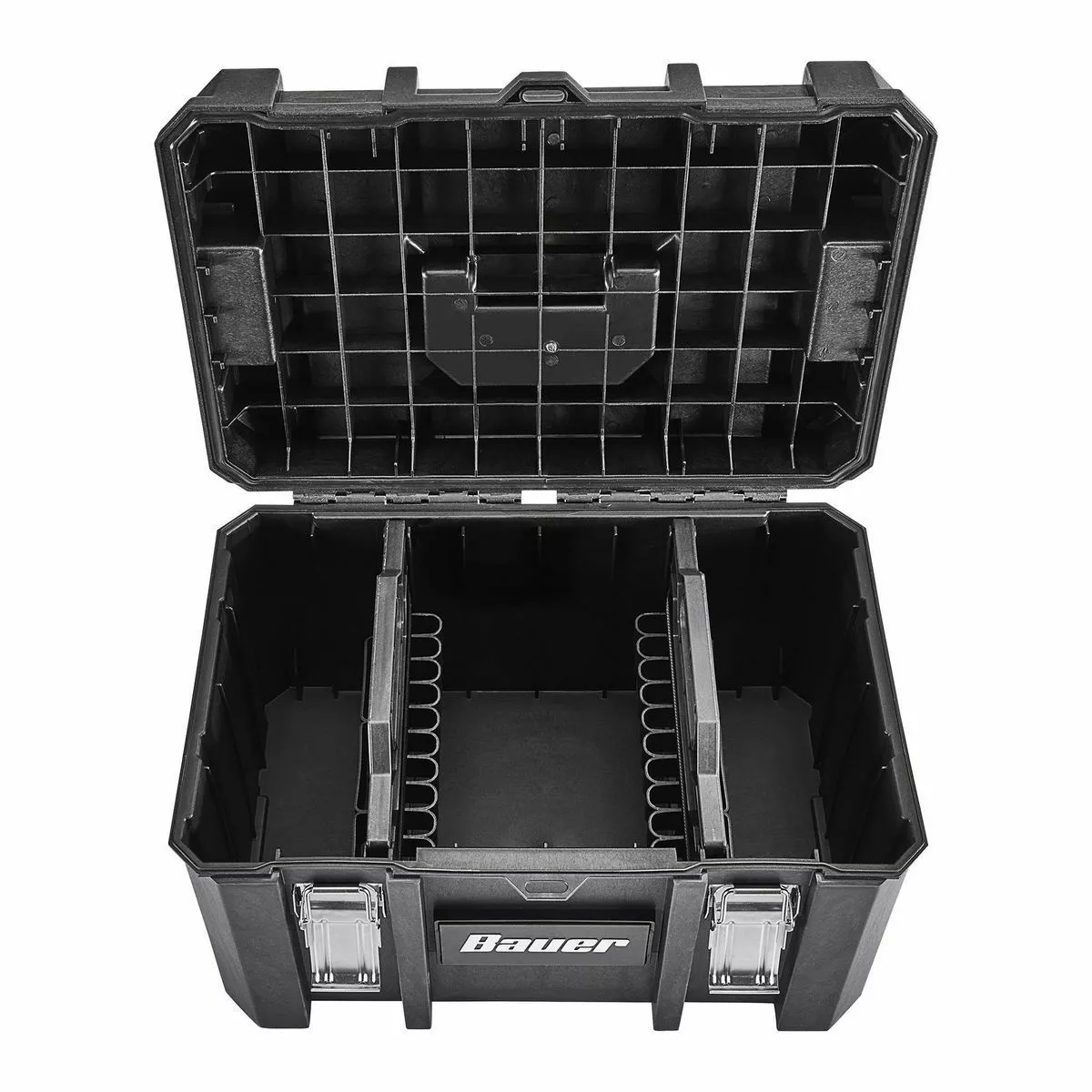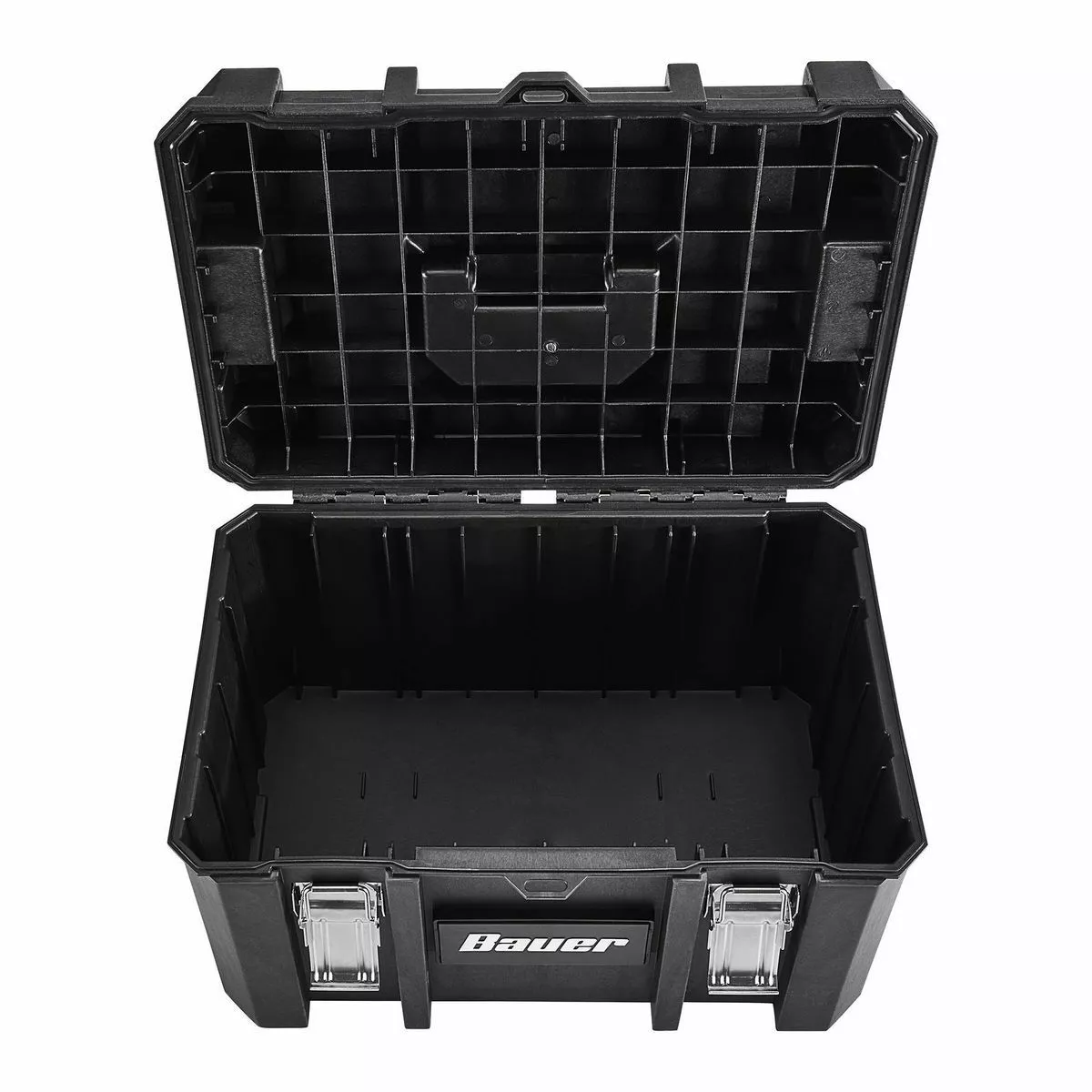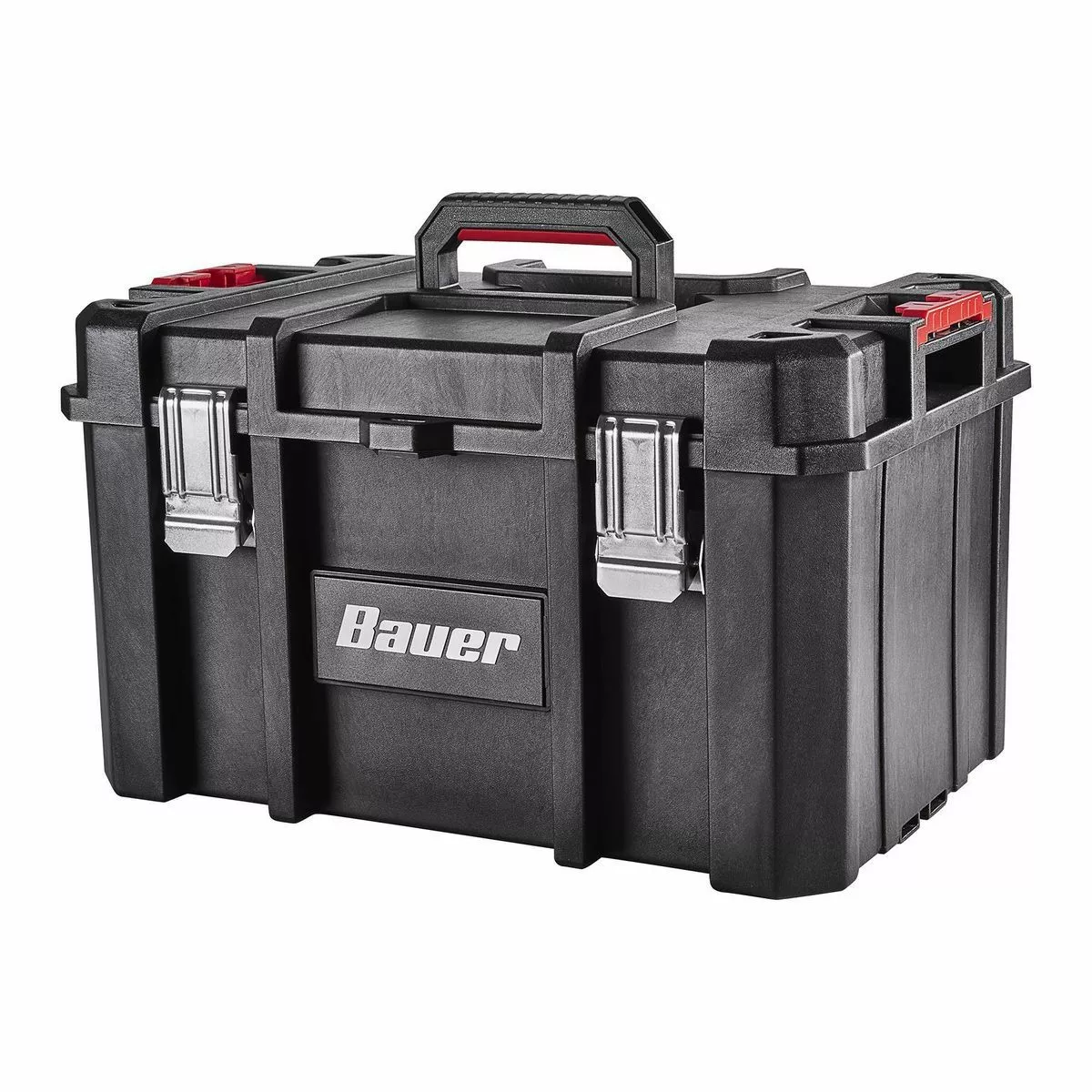The BAUERâ„¢ Large Modular Toolbox is ideal for organizing tools. Made from high-impact resin, this toolbox has removable tool cards for organizing pliers, screwdrivers, and more. Strong metal latches keep tools secure during transport. With a 50 lb. weight capacity this toolbox is fully compatible the BAUERâ„¢ Modular Storage System. The organizer is IP65 rated for dust and water resistance. Customize your storage for quick access to essential tools.