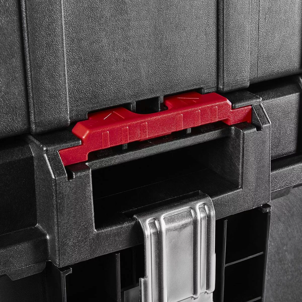 - Strong metal latches keep tools secure during transport